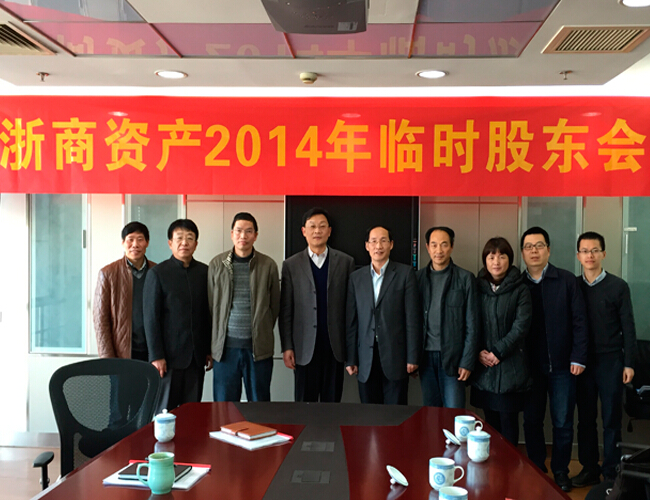 2014年12月31日,浙商資產(chǎn)臨時股東會在潮王路浙江省綜合資產(chǎn)經(jīng)營有限公司會議室召開。股東方代表省綜資公司董事長余興才,國貿(mào)集團(tuán)董事、浙商資產(chǎn)董事長徐德良參加了會議。